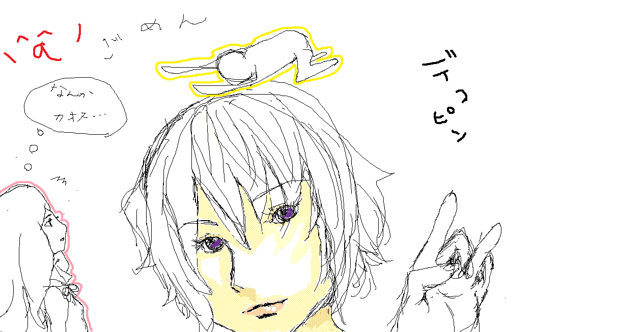 なんか、またペイントで絵を描いてしまいました。何か色々と気にらなくて、線とか消してみようとか無謀なことを考えて線消しってったらなぜかこうなった。なんだ、これ。